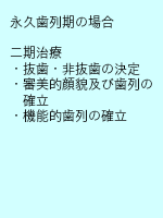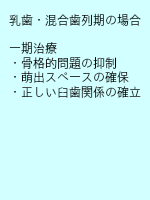 矯正治療を始める時期は個々の症例によって異なり、早い段階では永久歯が生え始める6歳頃、その他として永久歯が生え揃う12歳頃または成長が終了する13~16歳頃と様々です。まずは歯並びが気になった段階で一度専門医にご相談することをお勧めします。最終的な開始時期の決定は検査の結果次第となります。早い時期に治療を行う場合は治療期間は長くなりますが、抜歯の可能性を軽減することが出来ます。これを、予防的な矯正歯科治療といいます。