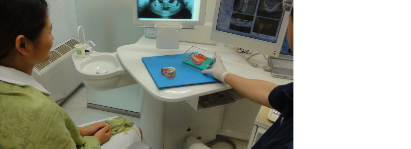 お口の中を拝見した上で、レントゲンを撮り、治療方法などをご説明していきます。